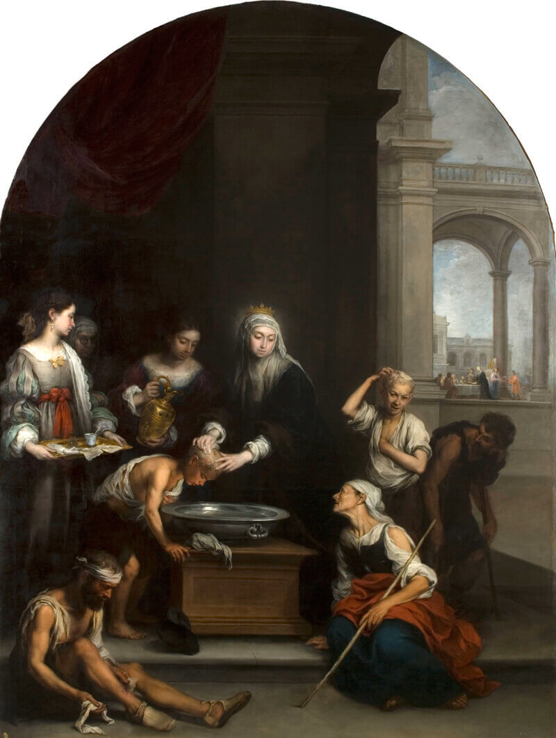 “Santa Isabel de Hungría curando a los tiñosos” (1672) es una de las obras cumbres del pintor Bartolomé Esteban Murillo, y de la pintura del Siglo de Oro. Pertenece al conjunto iconográfico que encargó Miguel Mañara para decorar la Iglesia del Señor San Jorge de la Hermandad de la Santa Caridad de Sevilla.