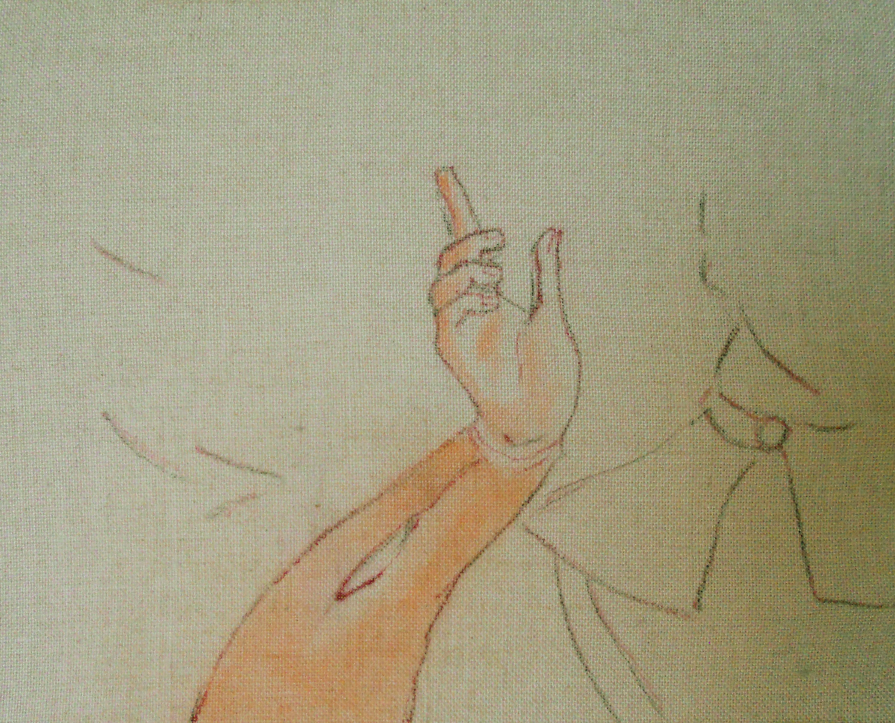 Caso aparte son las aguadas de colores, que difieren notoriamente de otros modos de temple, ya que se ejecutan sobre raso. En ellas también se aprecia una intensa impregnación del soporte.